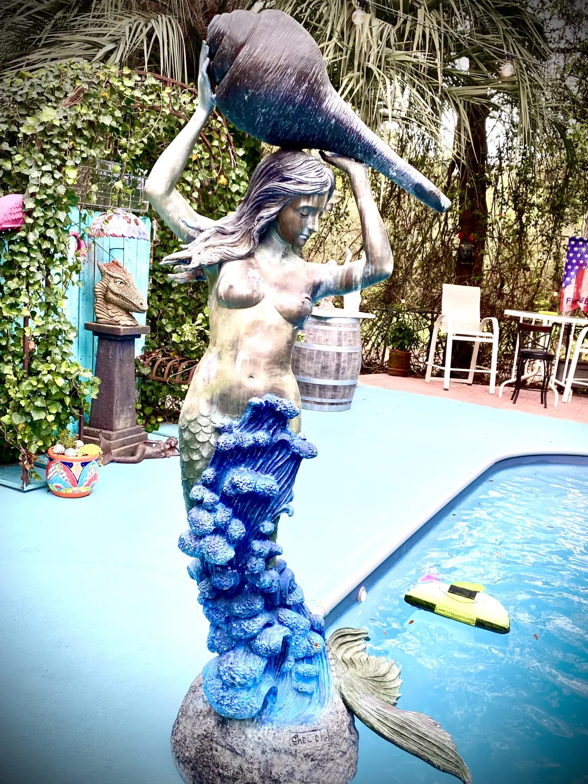 A joy for genuine people and all things creative, this lovely space offers an eclectic but tranquil mix of art, mermaids and poolside lounging that reflects their zest for life and whimsical southern spirits! Hosting guests from near and far, they welcome you to share the joy of Gulf Coast living in their ample private space so that you can create unforgettable moments where southern spirit, sunshine and good vibes come alive! And possibly a mermaid or two.
