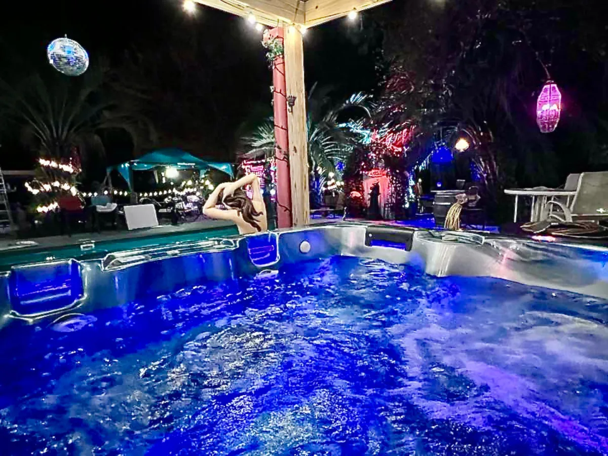 📌 Spacious hot tub overlooking the pool area.